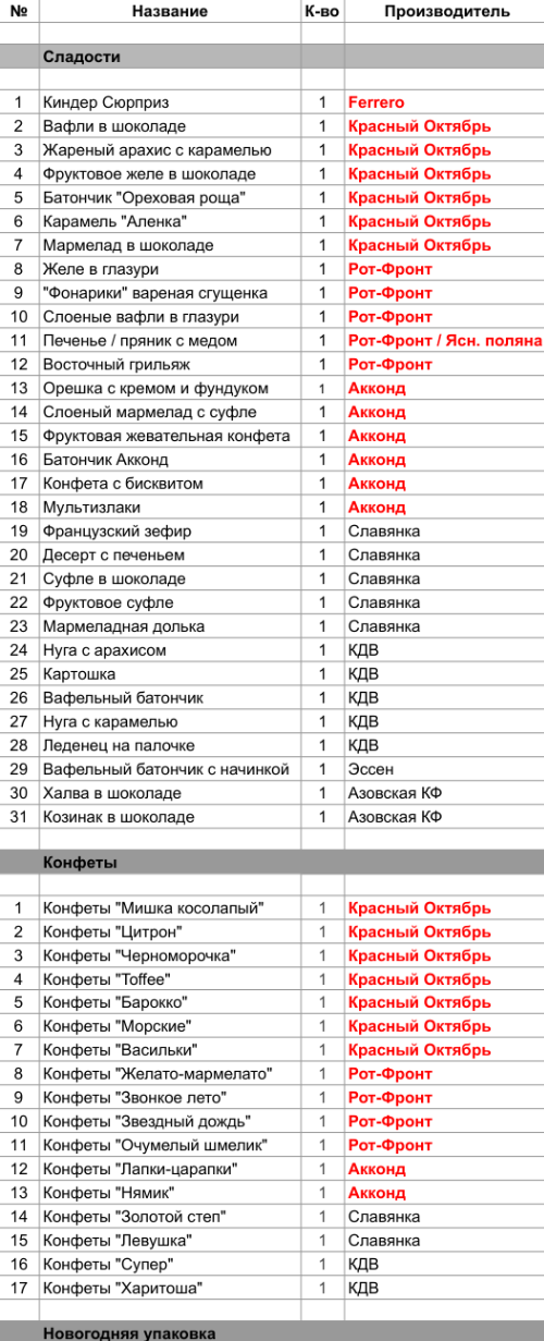 1. Проверить, можно ли внести изменения в состав подарка. Если нет, то скорее всего наборы были собраны еще летом из конфет, произведенных еще раньше