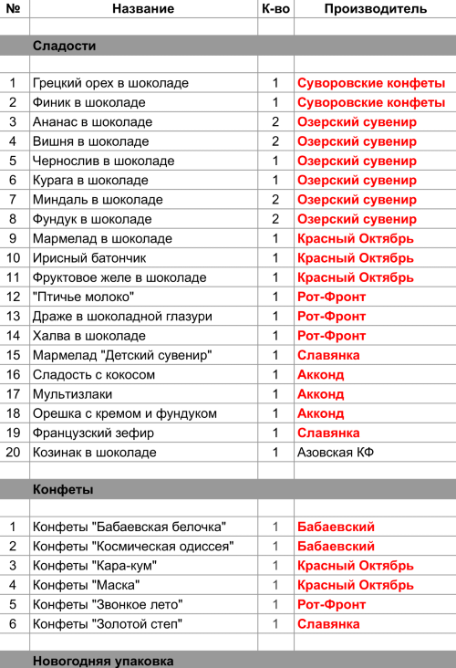 1. Проверить, можно ли внести изменения в состав подарка. Если нет, то скорее всего наборы были собраны еще летом из конфет, произведенных еще раньше