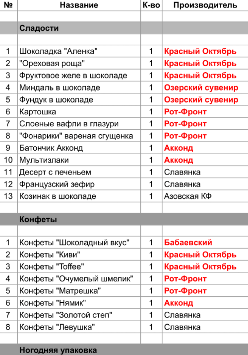 1. Проверить, можно ли внести изменения в состав подарка. Если нет, то скорее всего наборы были собраны еще летом из конфет, произведенных еще раньше